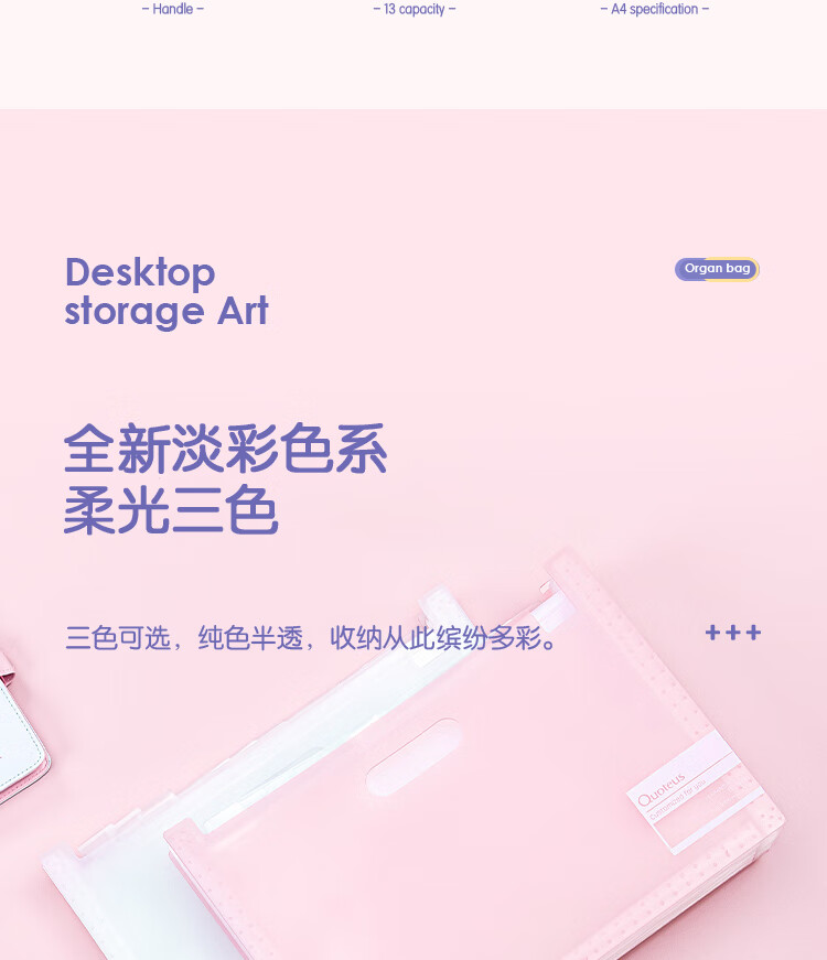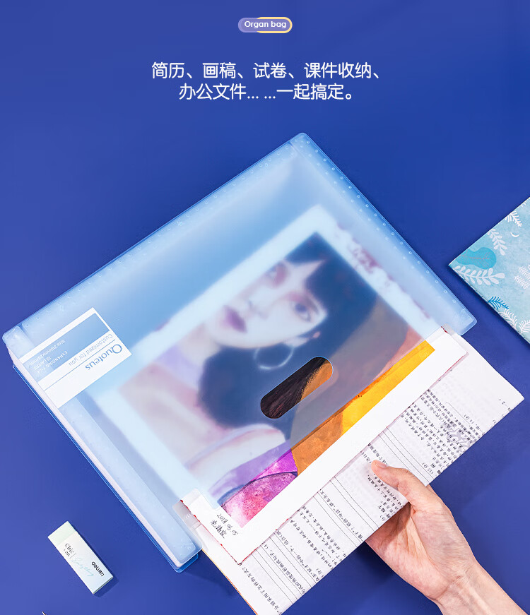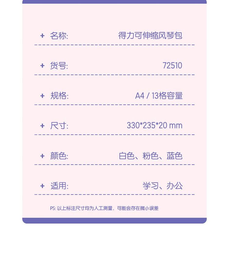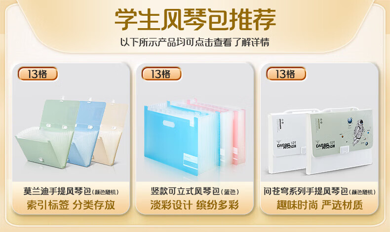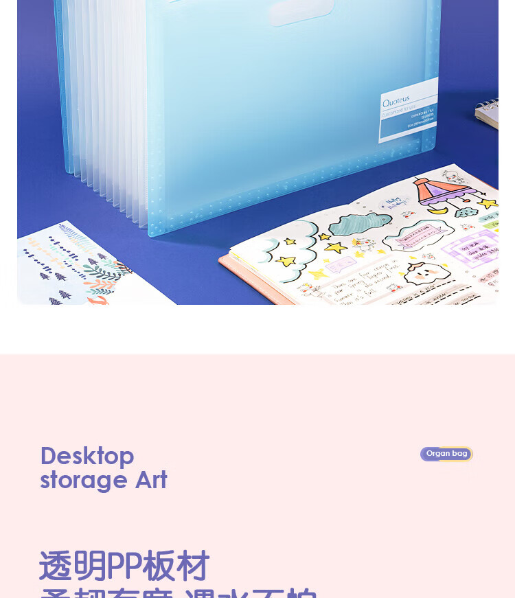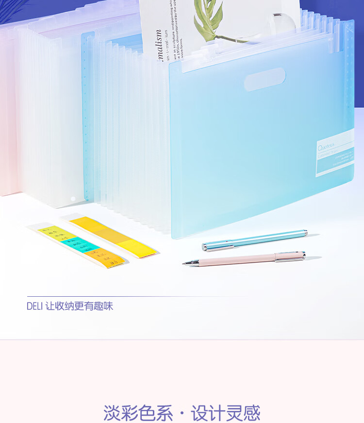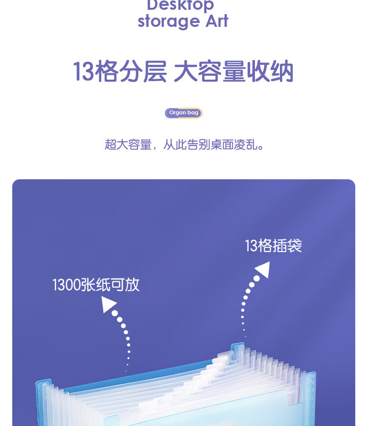 得力(deli)72510-13格A4竖款可立式风琴包多层文件夹 试卷收纳袋补习包 文件保护 透明