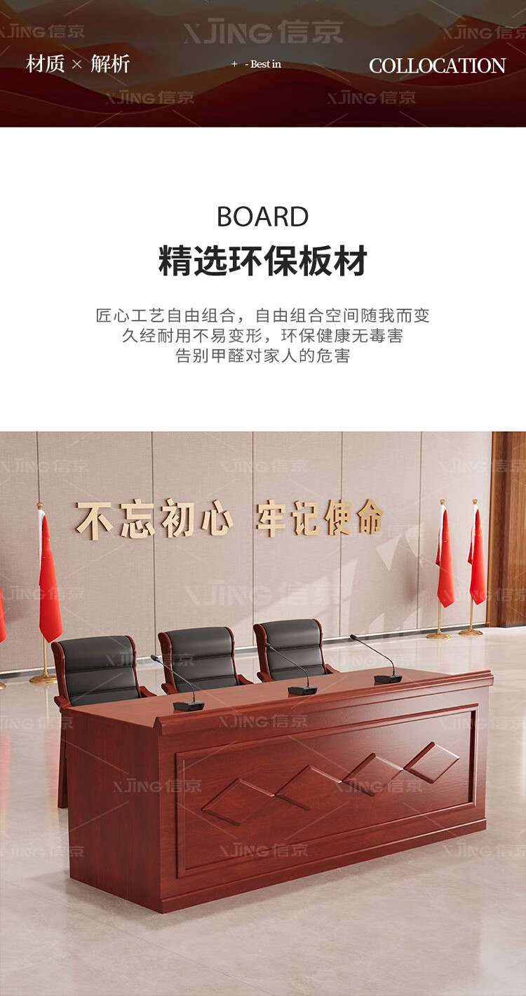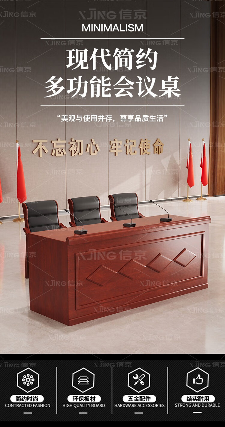 信京主席台演讲台发言台讲台油漆贴皮办公家具迎宾台1.8米含3把椅子