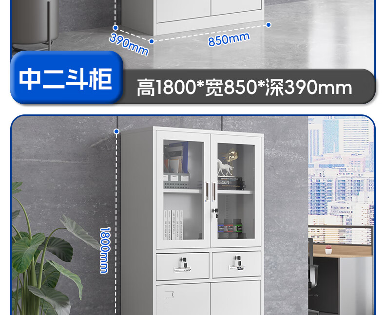 胜莱特自营文件柜档案柜铁皮柜办公柜钢制资料柜储物柜中二斗文件柜