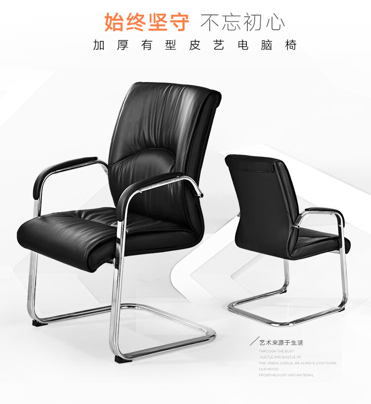 信京电脑椅会议椅家用弓形脚办公椅子洽谈椅会客椅 棕色