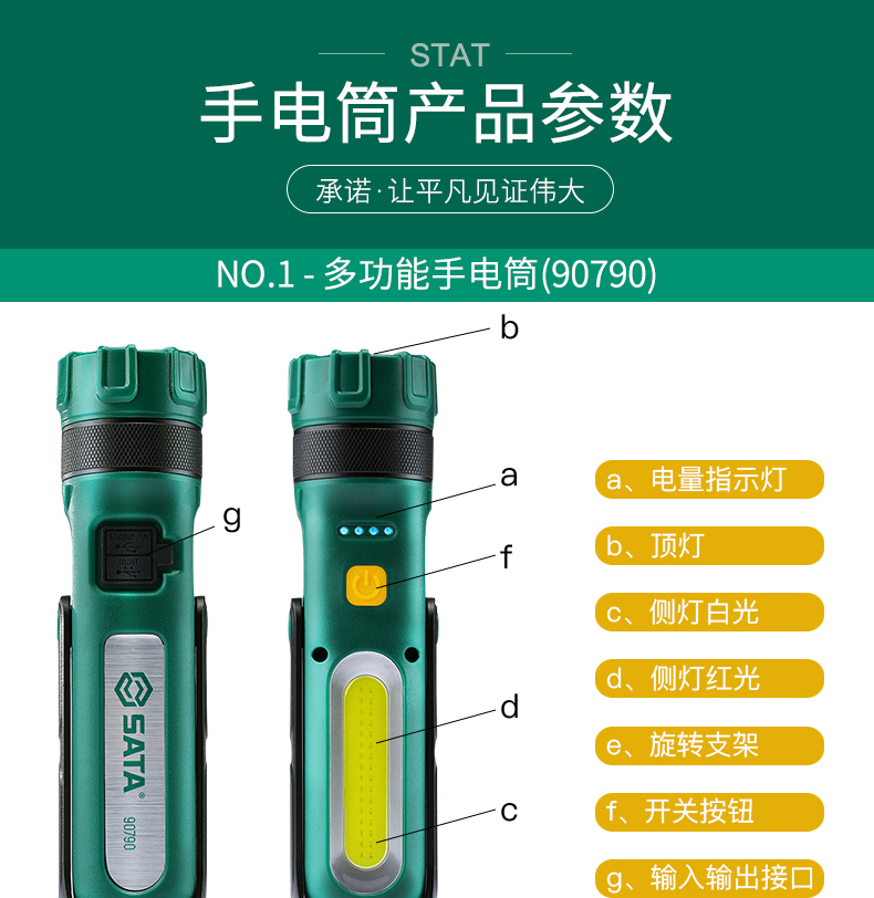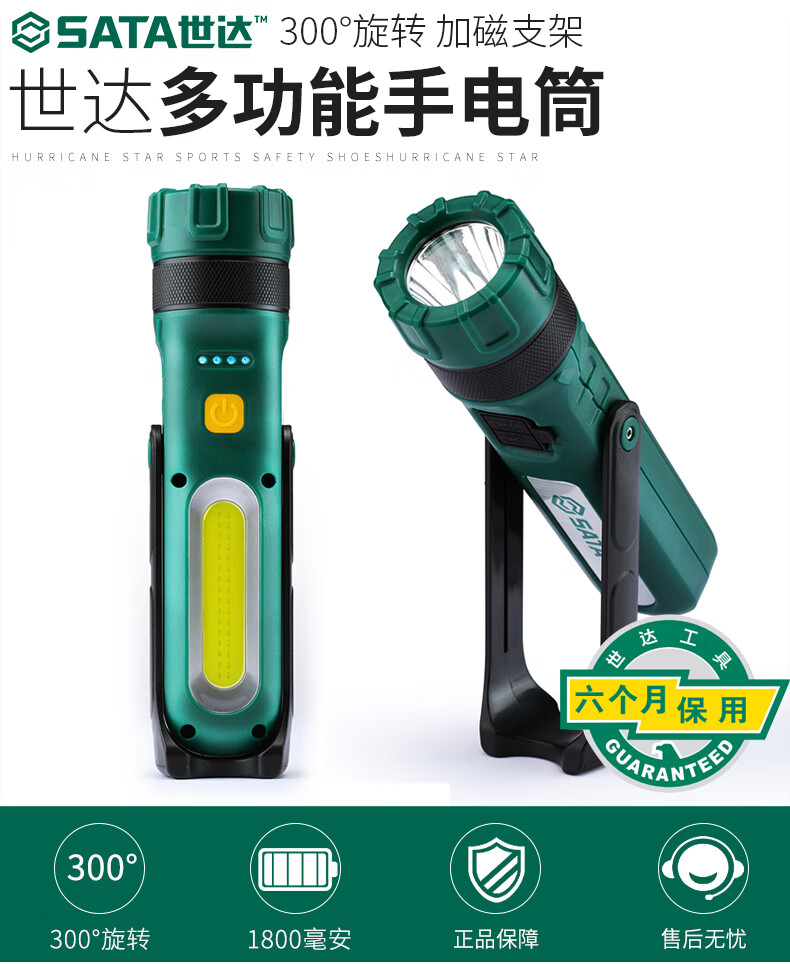 世达(SATA)90790、90791高显色版 多功能手电筒300°旋转可吸附照明灯 90791多功能手电筒(高显色版)