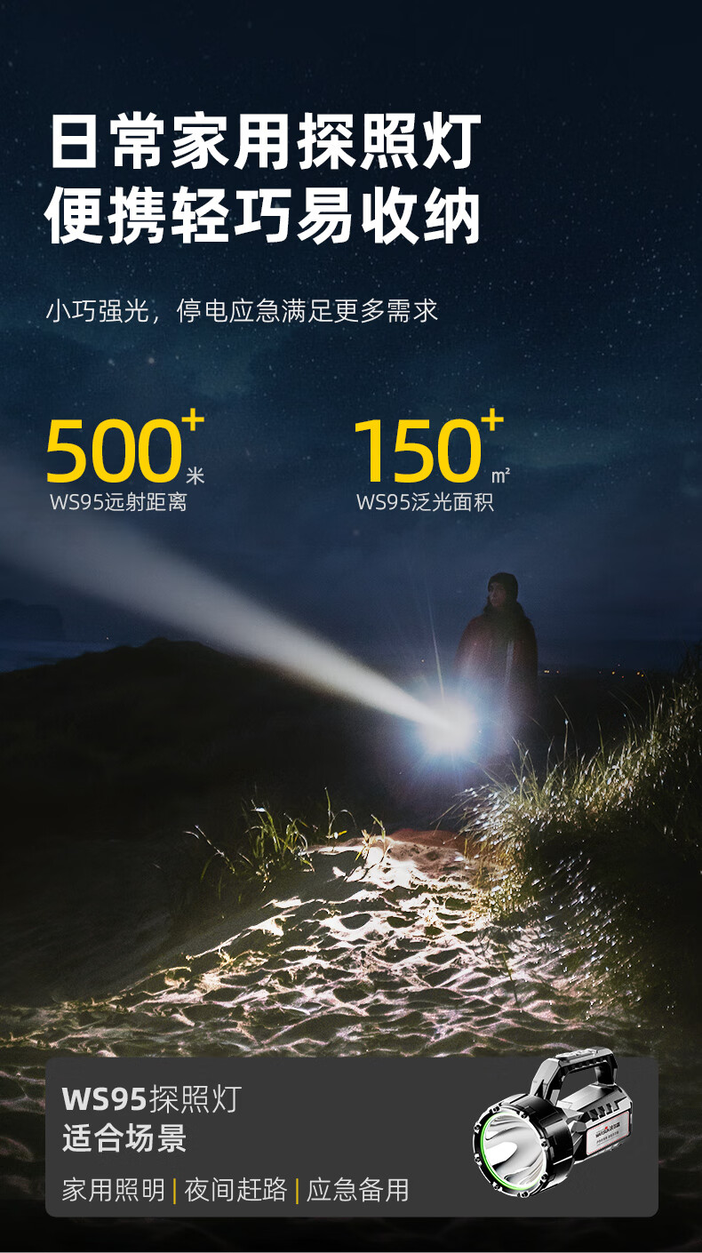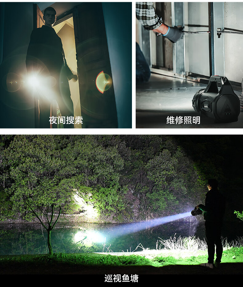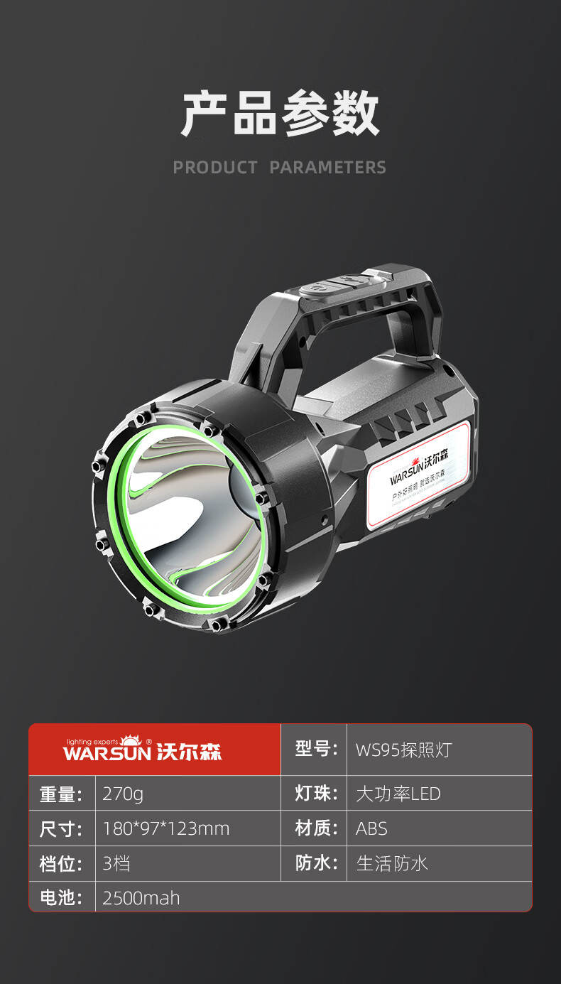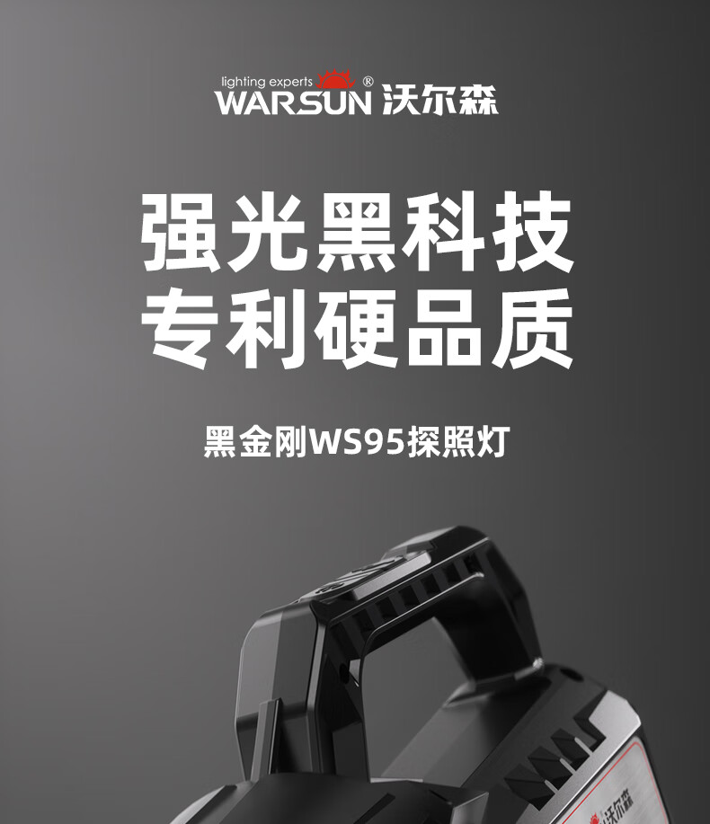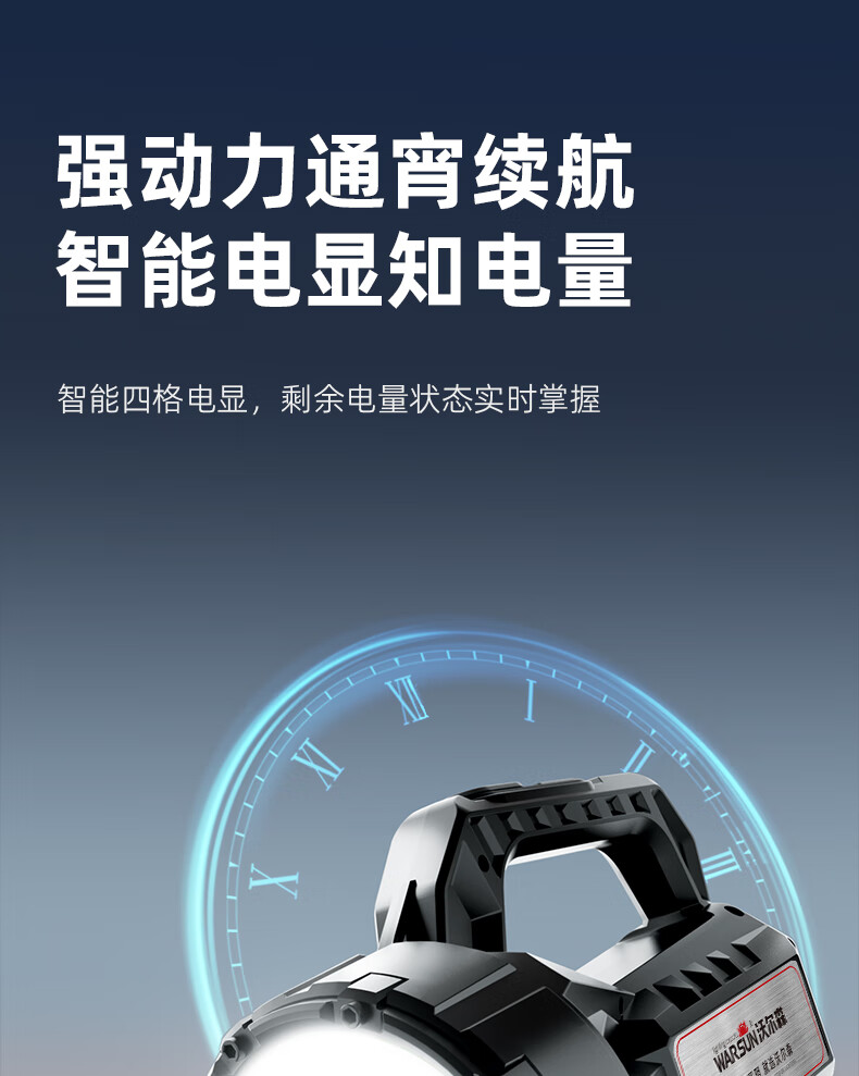 Warsun手电筒强光探照灯应急手提灯照知了猴远射充电大功率超亮巡逻矿灯