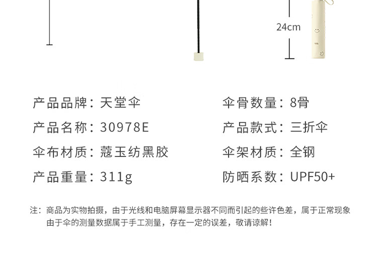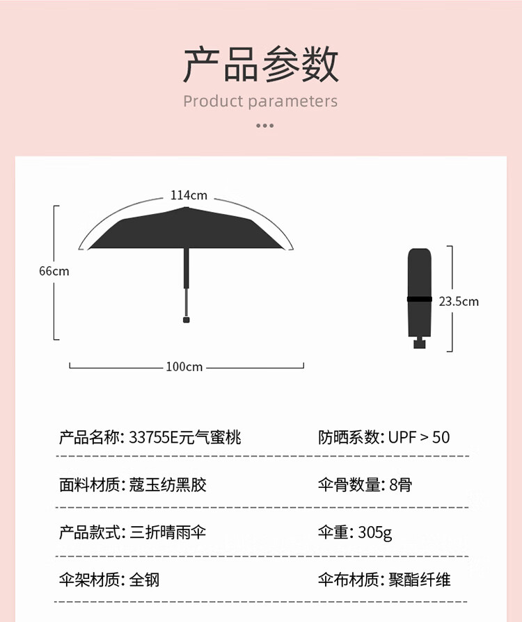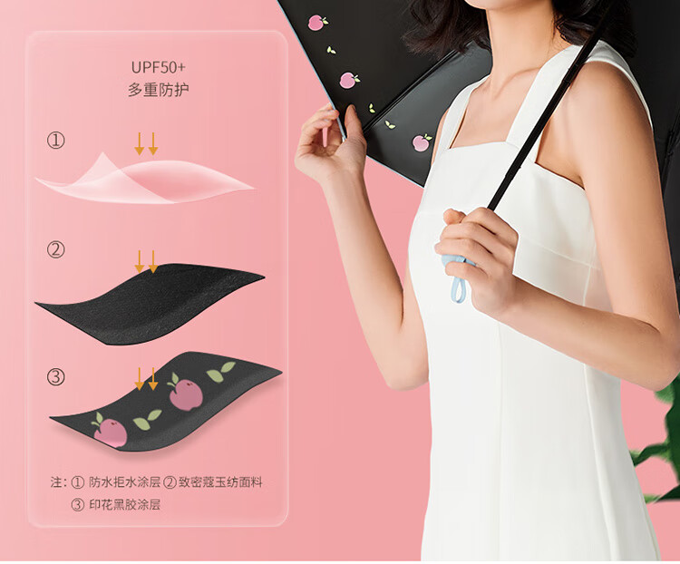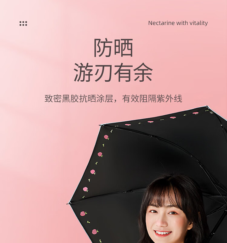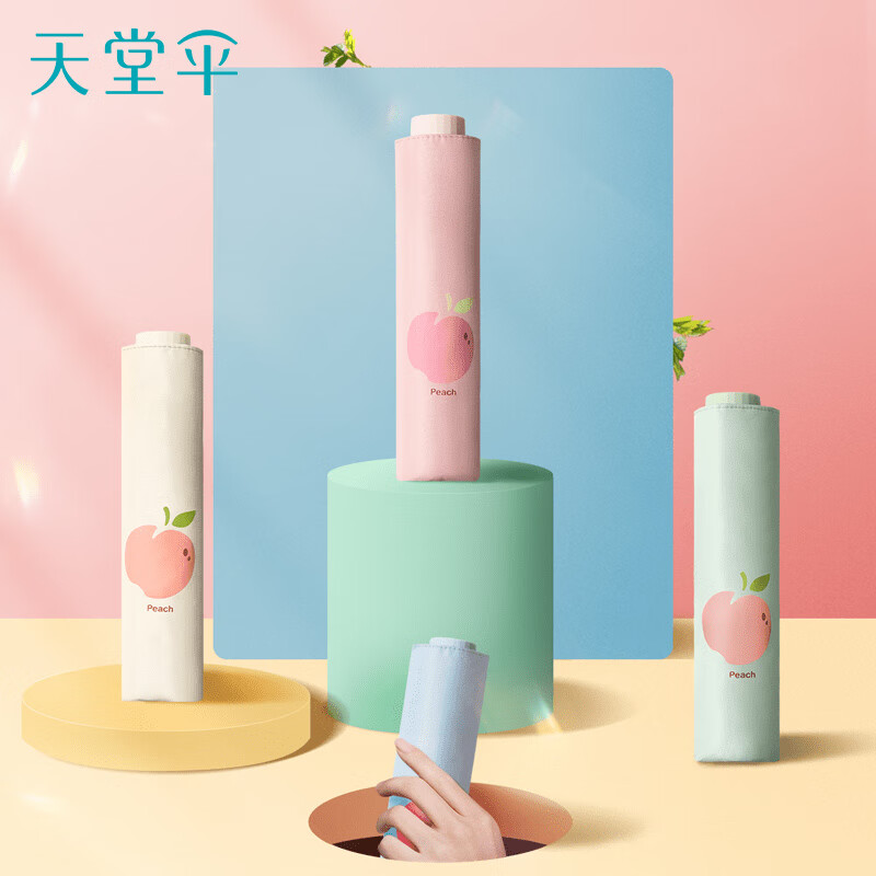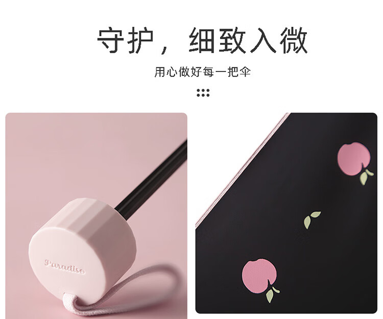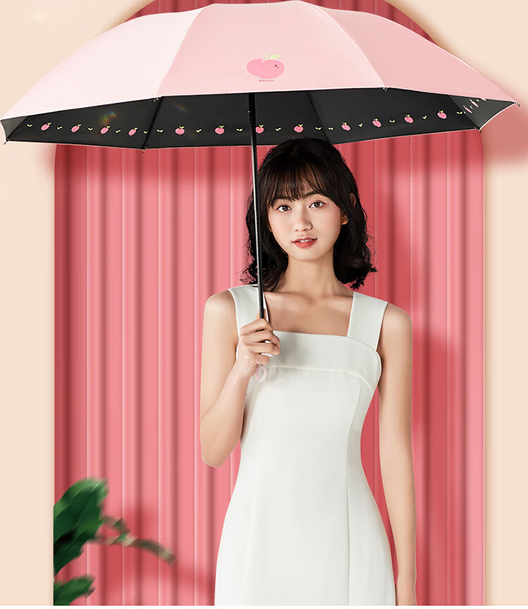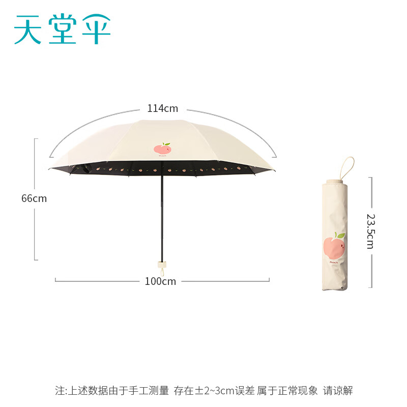 天堂伞遮阳伞黑胶防晒伞蜜桃图案防紫外线太阳伞三折晴雨伞 蜜桃三折-米黄