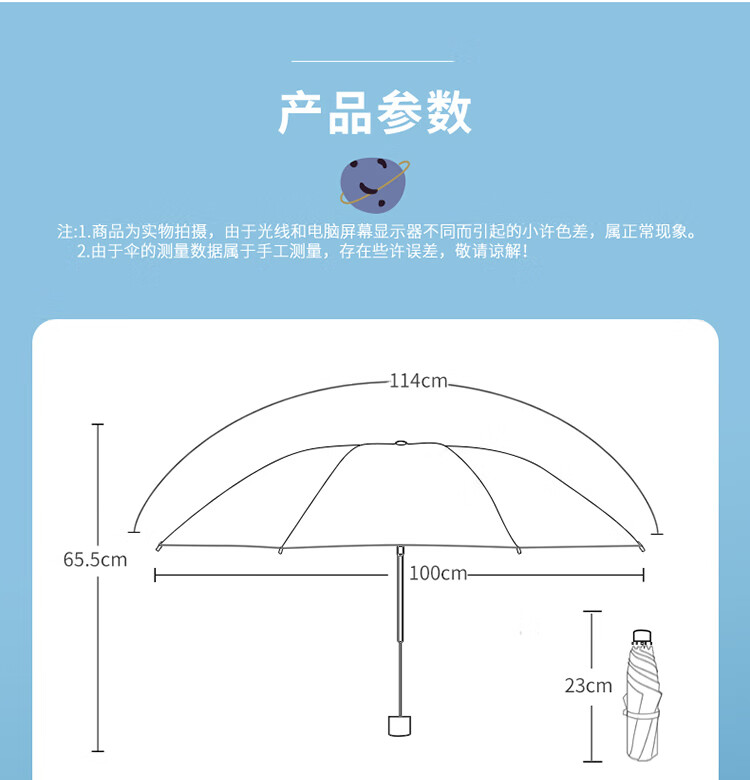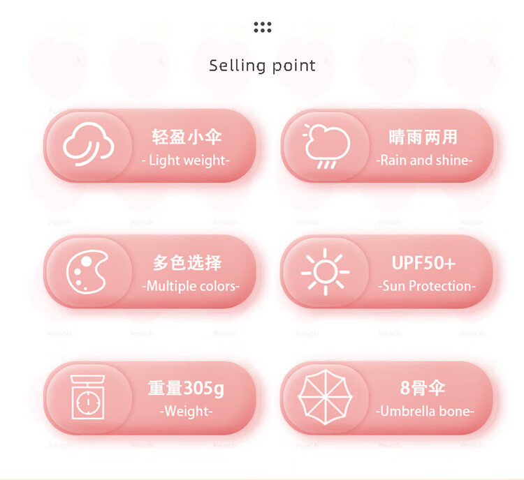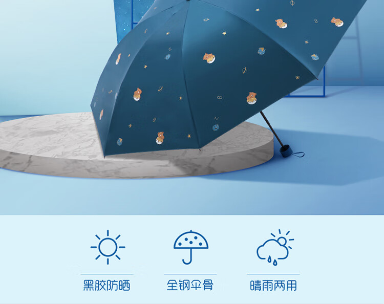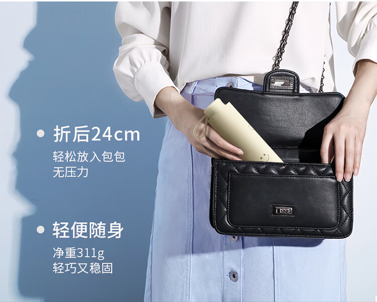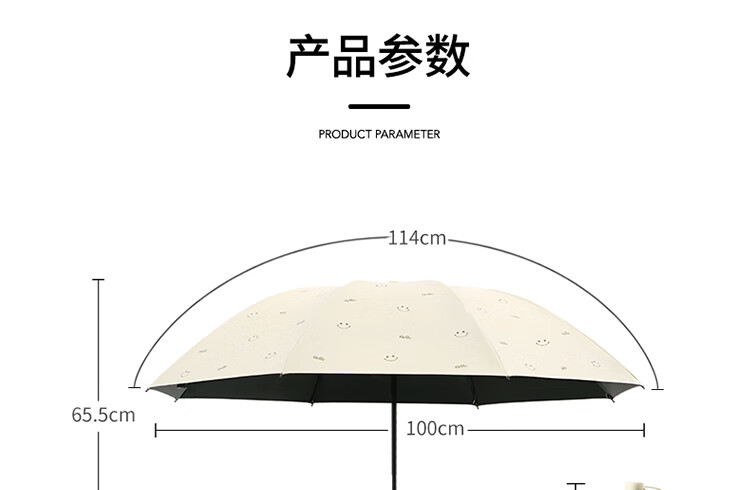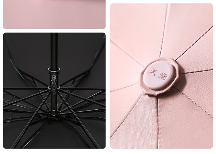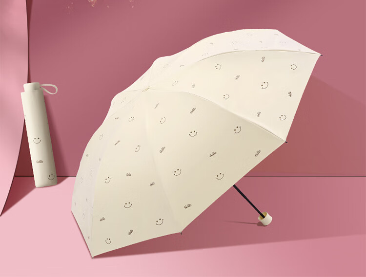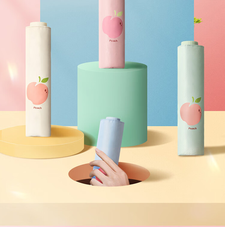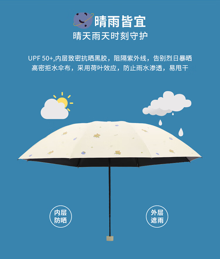 天堂伞遮阳伞黑胶防晒伞蜜桃图案防紫外线太阳伞三折晴雨伞 蜜桃三折-米黄