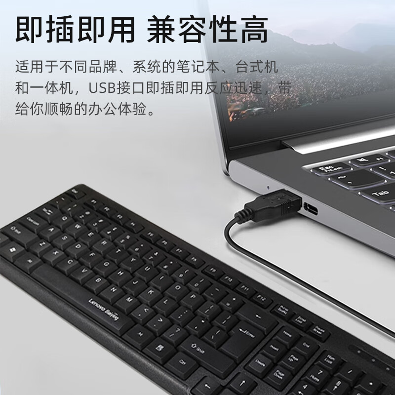 联想(lenovo)键盘KL21 有线键盘 电脑办公键盘 笔记本台式机一体机键盘黑色 USB