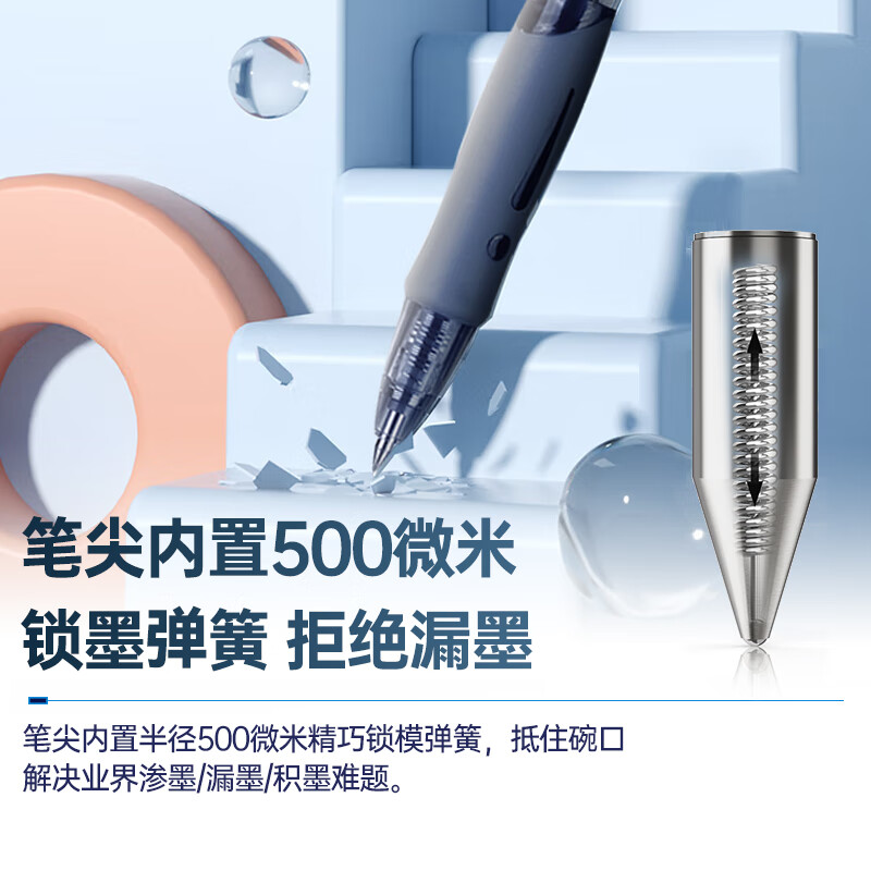 齐心(Comix) 顺滑速干中性笔按动签字笔水笔办公文具 0.5mm子弹头 黑色 12支装 EB18