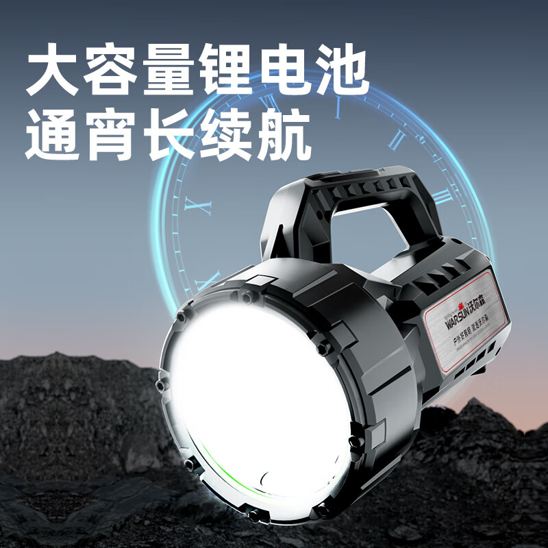 Warsun手电筒强光探照灯应急手提灯照知了猴远射充电大功率超亮巡逻矿灯